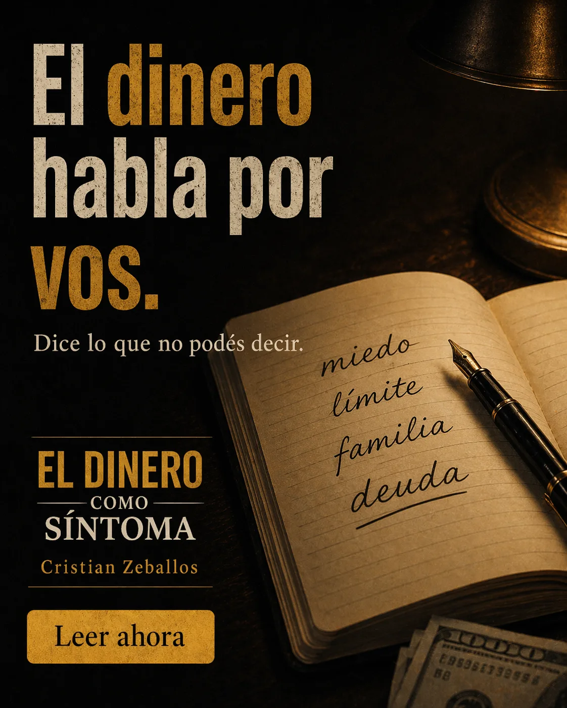 El dinero como síntoma no es un libro de finanzas. Es un libro sobre por qué repetís con el dinero — y cómo dejar de hacerlo.